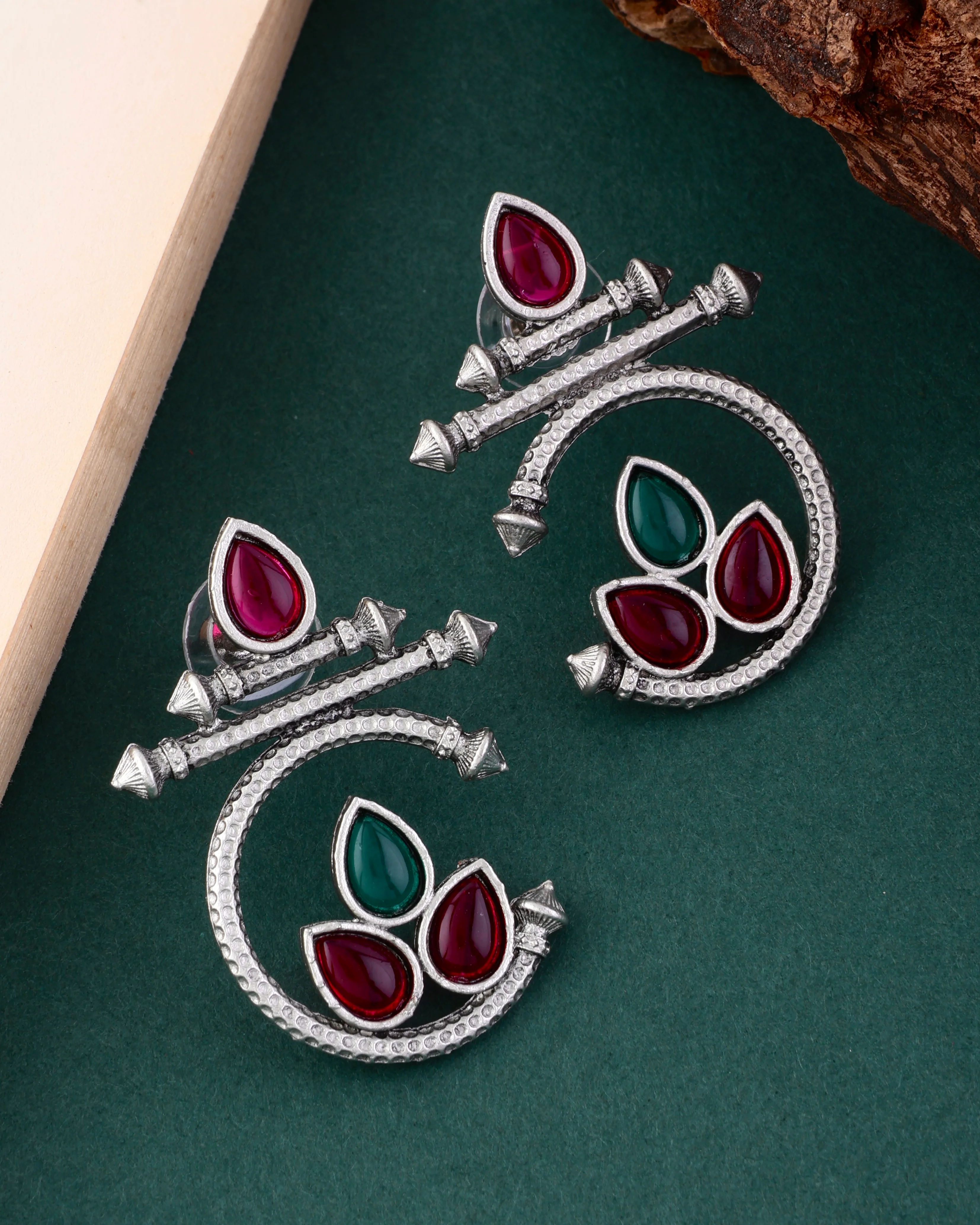 Green Red Silver Kumud Earring
